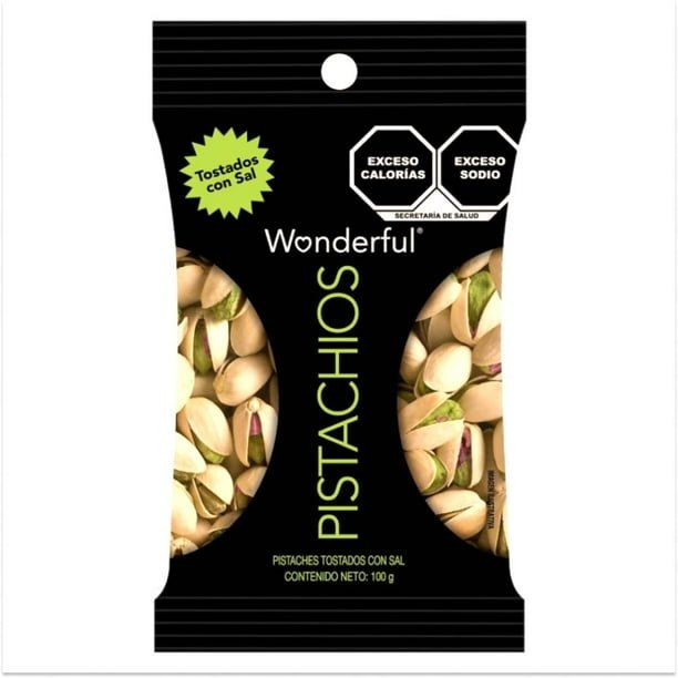 Pistaches Wonderful tostados con sal 100 g, sin aceite, naturalmente libres de colesterol.